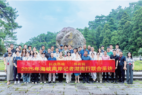 衡山之旅结束后,采访团一行在衡山磨镜台合影留念。图/主办方提供