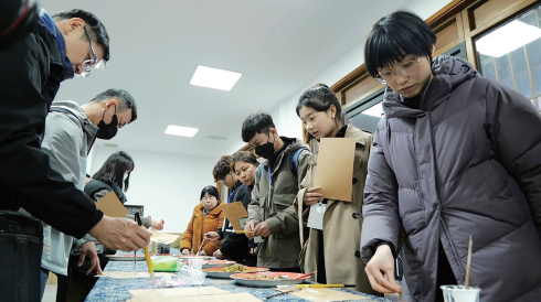 2025年4月,参加“相约桃花源·携手向未来”两岸青年交流研学营的台湾青年来到桃花源对台交流基地,体验麻质画创作。