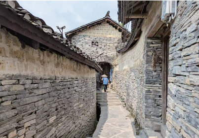 与其他苗寨常见的木楼不同,竹山苗寨,无论是民宅墙体、庭院台阶,还是寨门牌坊、祭祀高台,皆由当地青石垒砌而成。