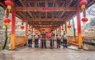 沿着青石板路向村中行进,两旁古树苍苍,堡楼耸立。苗族民居依山层叠而上,从山脚一直蔓延至山顶。在这里,非遗文化与自然美景相互交融,共同谱写了一曲美丽的乐章。